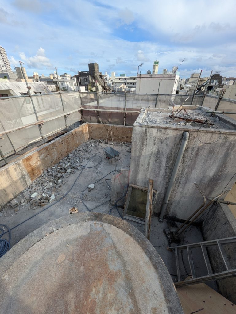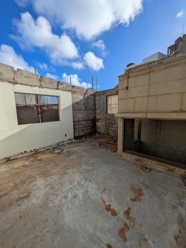 現場は那覇市の、築44年の建物。 Instagramで「暗かったあの場所」と紹介した、年月の流れを感じさせる空間でした。