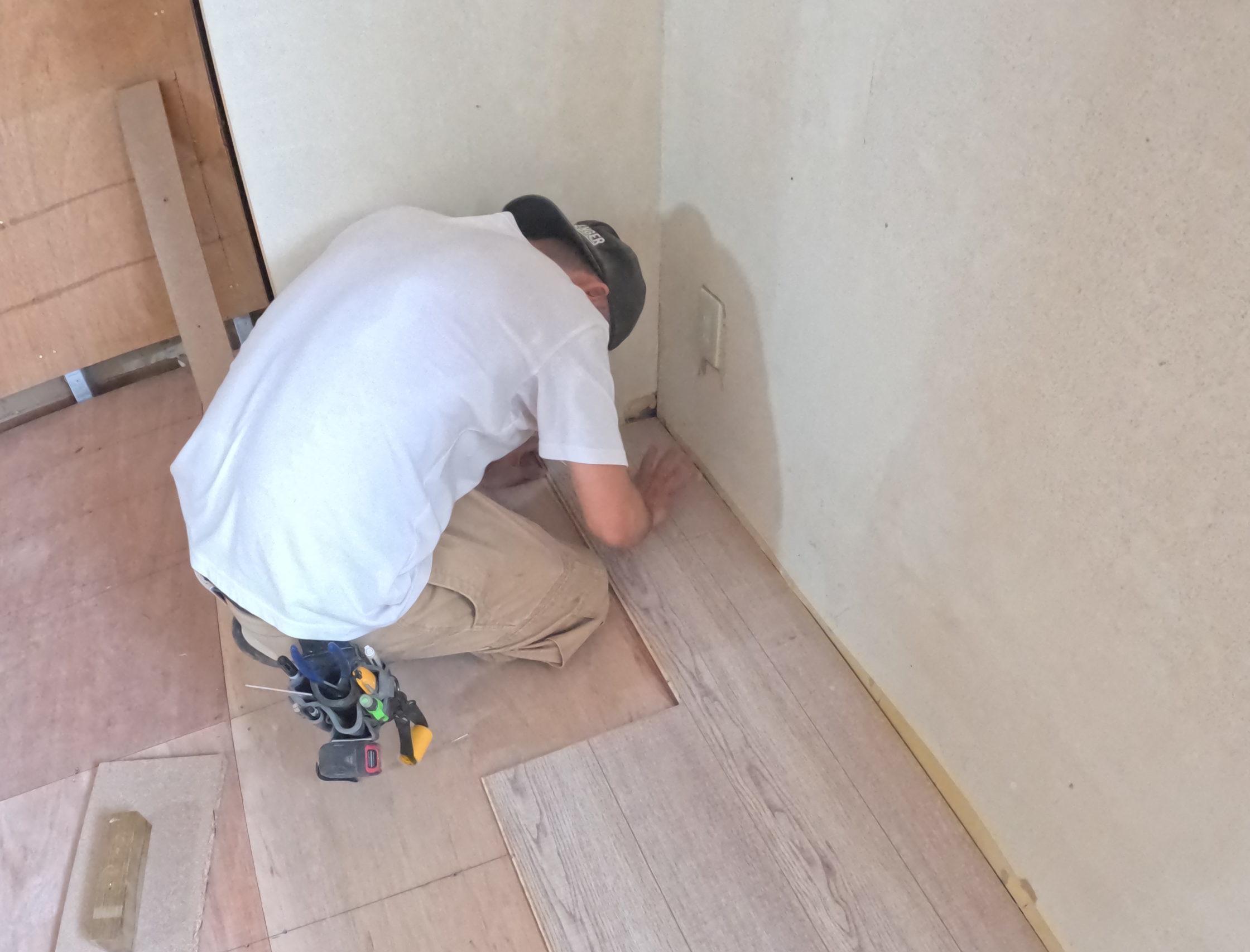 1ミリの誤差も許されない。リノベーションの「顔」を造る、職人の精密な床施工現場